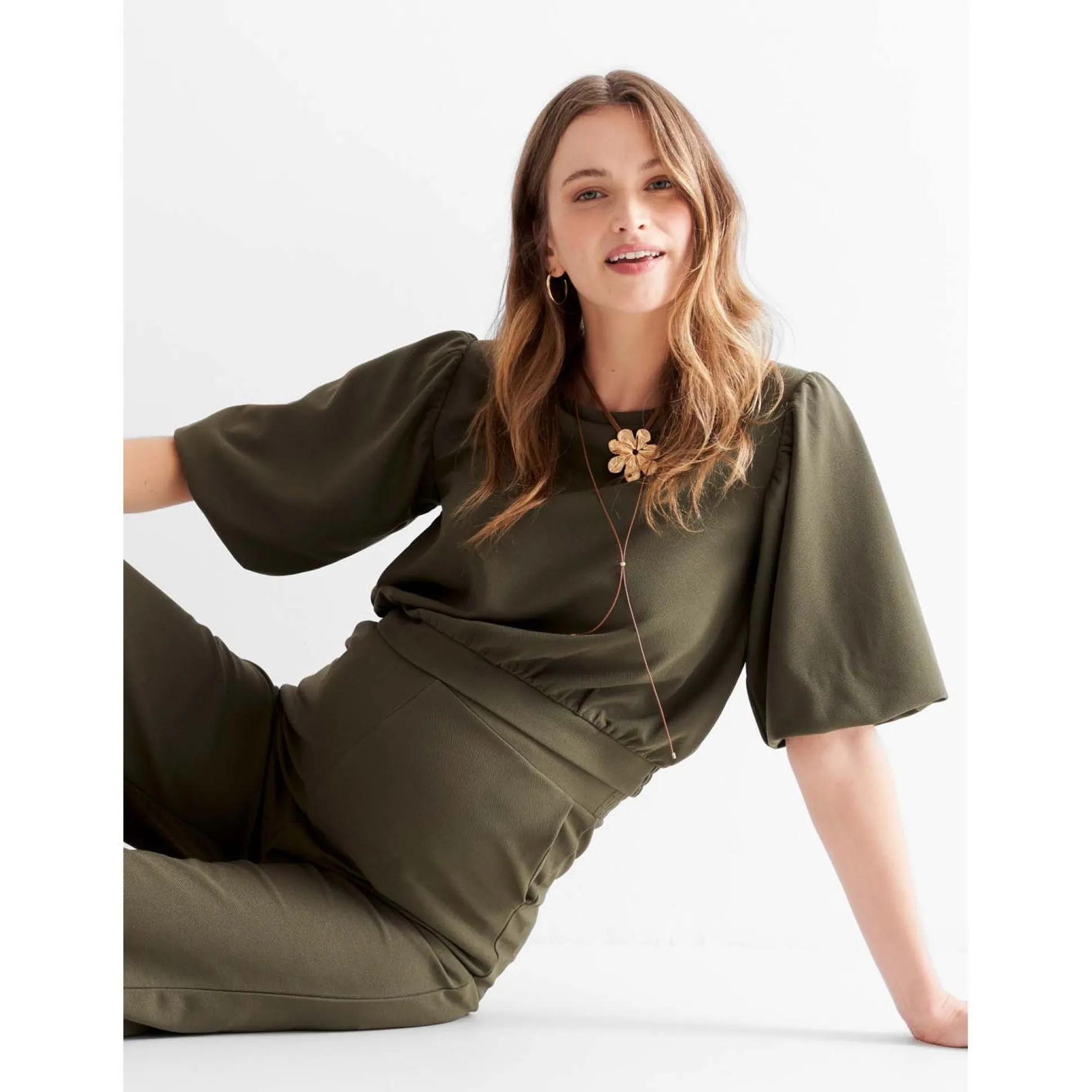 Prénatal zwangerschapstop. Deze top is gemaakt van een fijne kwaliteit met stretch. Deze crop top heeft een ronde hals en een korte pofmouw. De onderzijde van de top is van een elastische band voorzien. Combineer de top met de bijpassende zwangerschapsbroek of een rok van Prénatal. Verkrijgbaar in de maten XS t/m XXL. Samenstelling: 96% polyester en 4% elastaan. Wassen op 30 graden met gelijke kleuren. Dit product is getest op schadelijke chemicaliën en gecertificeerd volgens standaard 100 door OEKO-TEX® BJ020 169567 TESTEX.