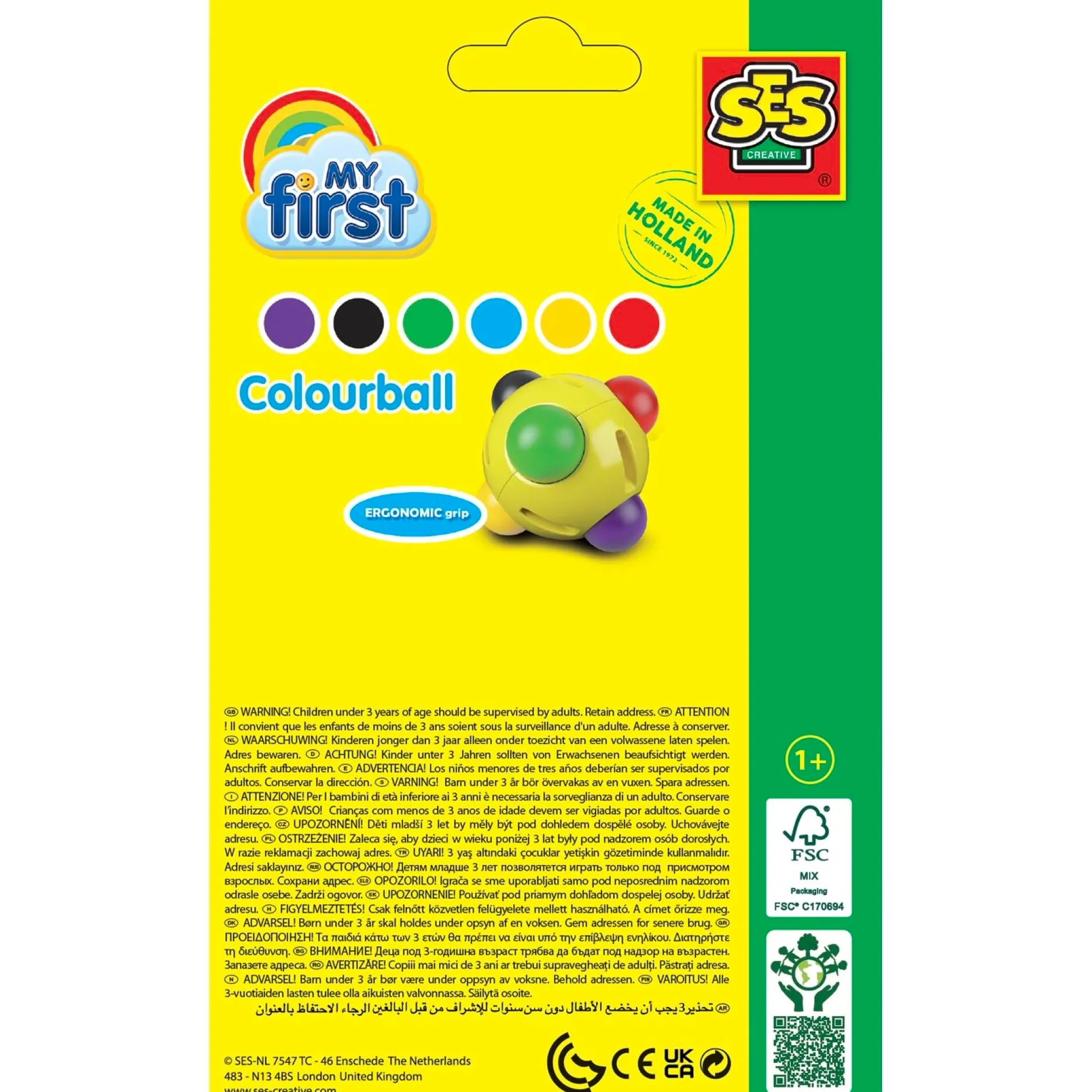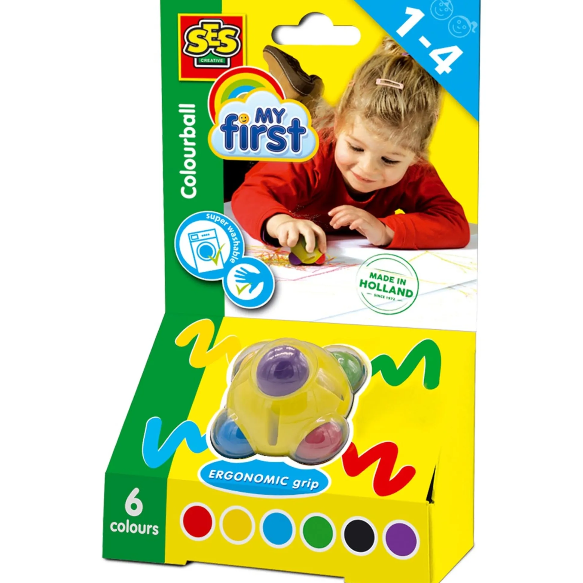 Ontdek de SES Colourball: speciaal ontworpen voor de allerkleinsten om spelenderwijs creatief aan de slag te gaan. Deze vrolijke bal heeft 6 verschillende kleuren wasco, veilig verwerkt in handige doppen. Zo kan je kindje vanaf 12 maanden al experimenteren met tekenen en kleuren, zonder losse onderdelen. De ergonomische vorm ligt prettig in kleine handjes en stimuleert de motorische vaardigheden. Ideaal om samen de eerste kunstwerken te maken en de fantasie te prikkelen. Met de SES Colourball wordt tekenen een feest – veilig, eenvoudig en vol kleur. Perfect als eerste stap naar een leven vol creativiteit.