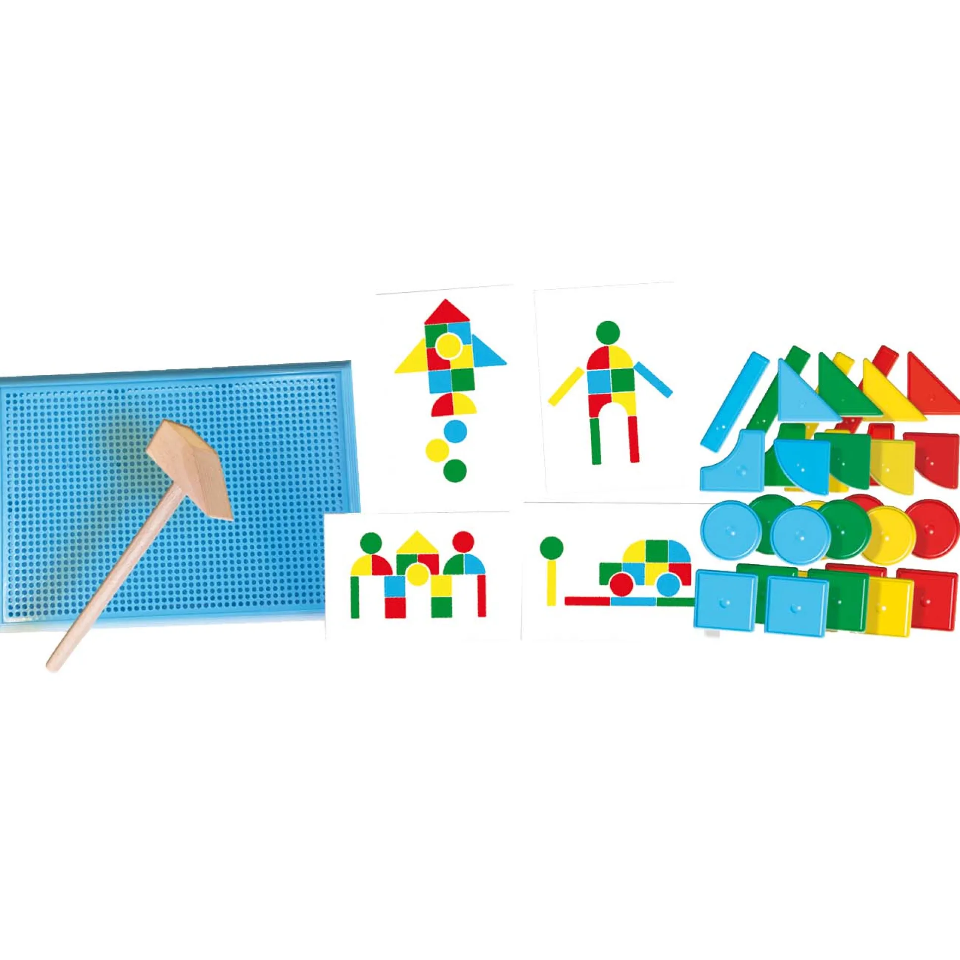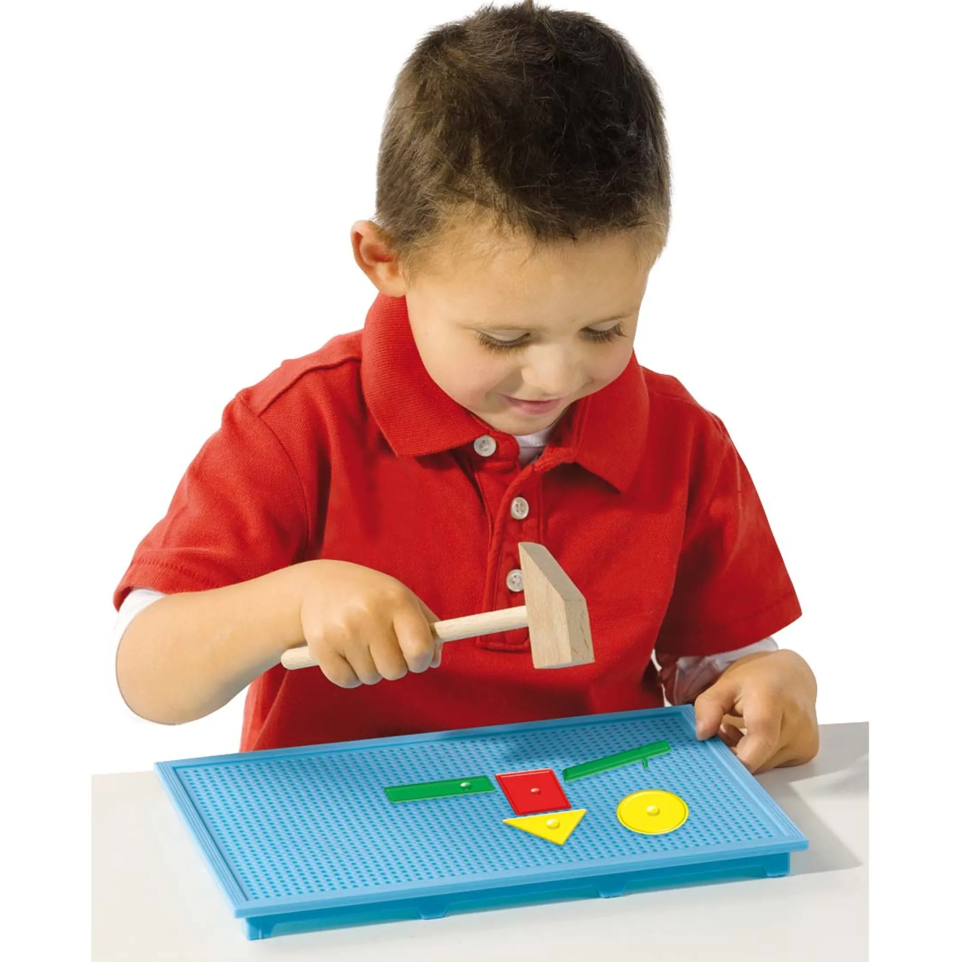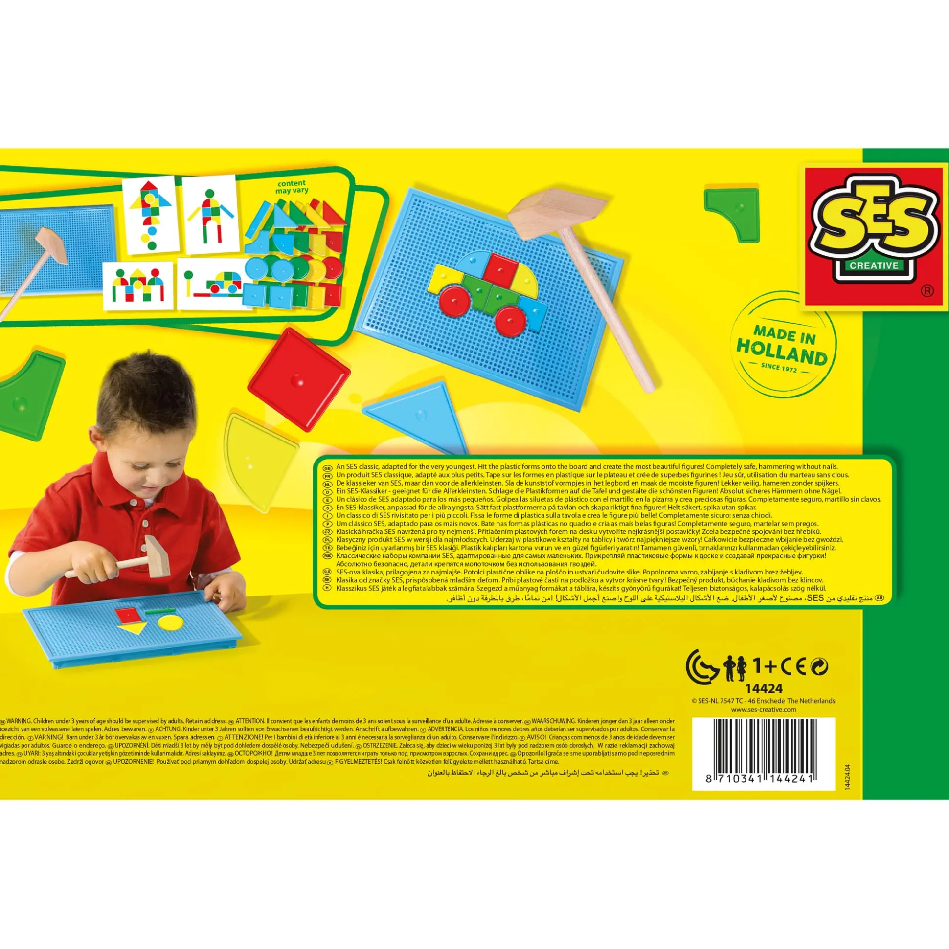De klassieker van SES is nu ook beschikbaar voor de allerkleinsten. Sla de kunststof vormpjes in het legbord en maak de mooiste figuren! Lekker veilig, hameren zonder spijkers. De set bevat leuke voorbeelden, maar je kunt natuurlijk ook je eigen creativiteit volgen. Geschikt voor kinder van 1 tot 4 jaar.
