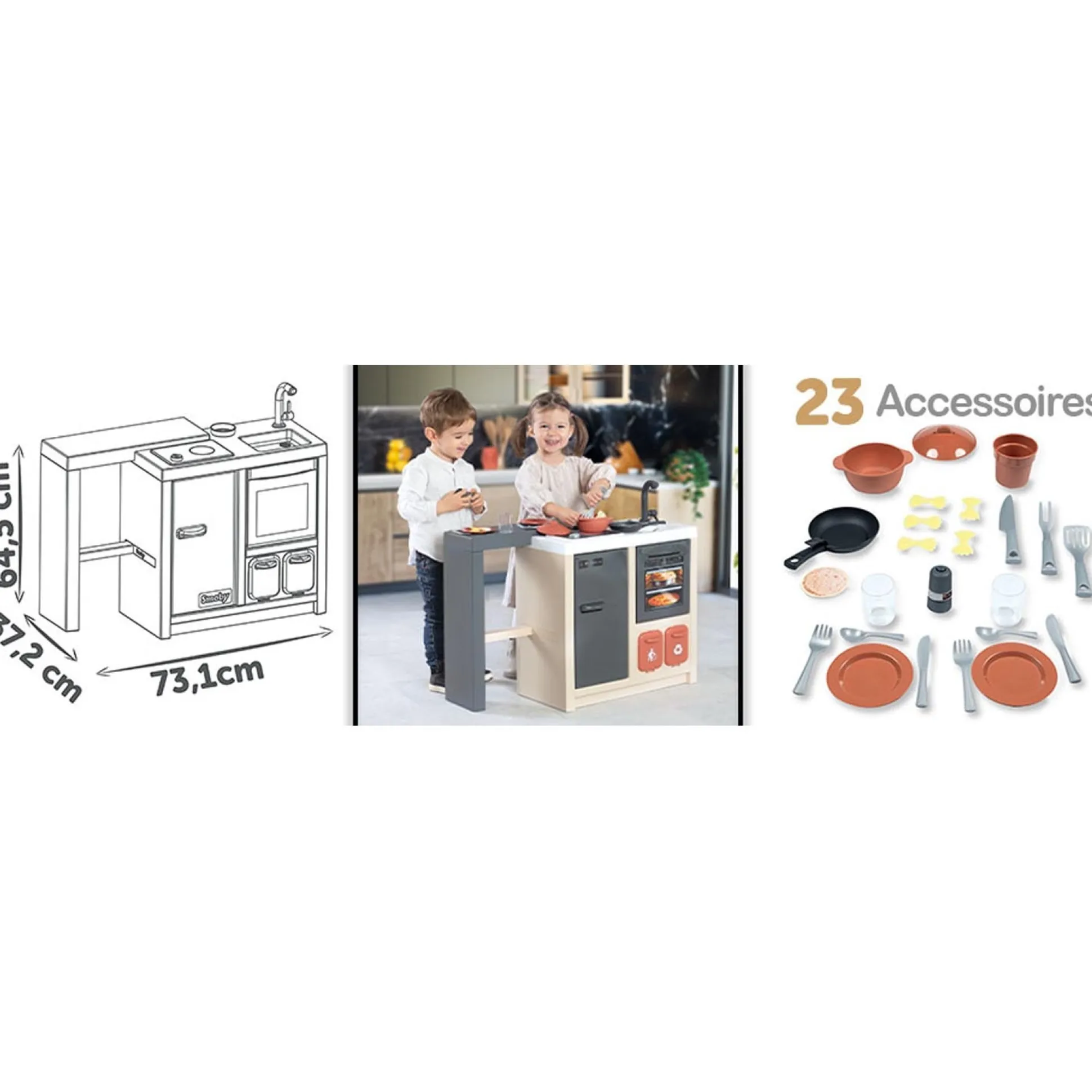 Met dit leuke keukentje van Smoby heeft jouw kindje een keukentje en kookeiland in 1! Het keukentje wordt geleverd inclusief accessoires: Kookpan, koekenpan, 2 bordjes met bestek en glazen, en etenswaren. Ook beschikt het keukentje over een koelkast, oven, een kraan en 2 vuilnisbakjes. Jouw kleine chef heeft alles beschikbaar om een mooie maaltijd te maken.
