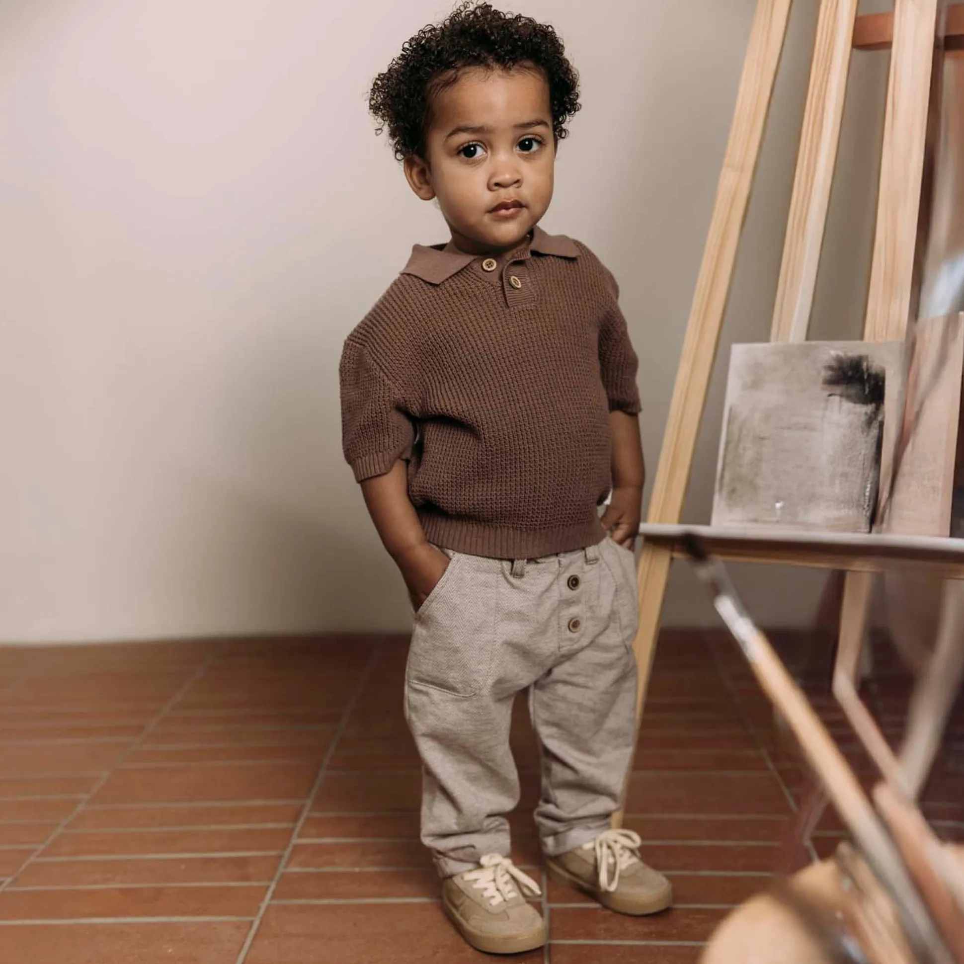 Deze Sweet Petit broek is gemaakt van een mooie katoenen kwaliteit. De broek heeft een knoopsluiting in de taille en is voorzien van een mooie bruine kleur. De broek is goed te combineren met de rest van de Sweet Petit collectie bij Prénatal. Verkrijgbaar in de maten 56 t/m 122. Kwaliteit: 100% katoen. Binnenstebuiten wassen op 40 graden met gelijke kleuren.