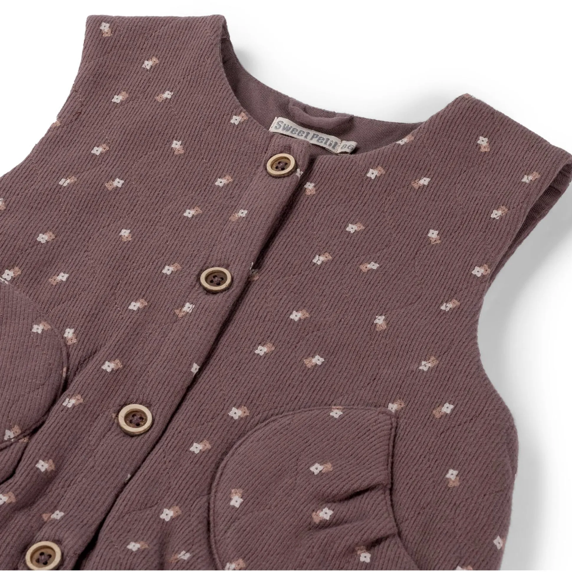 Sweet Petit peuter gilet Jitte mouwloos all over print bruin