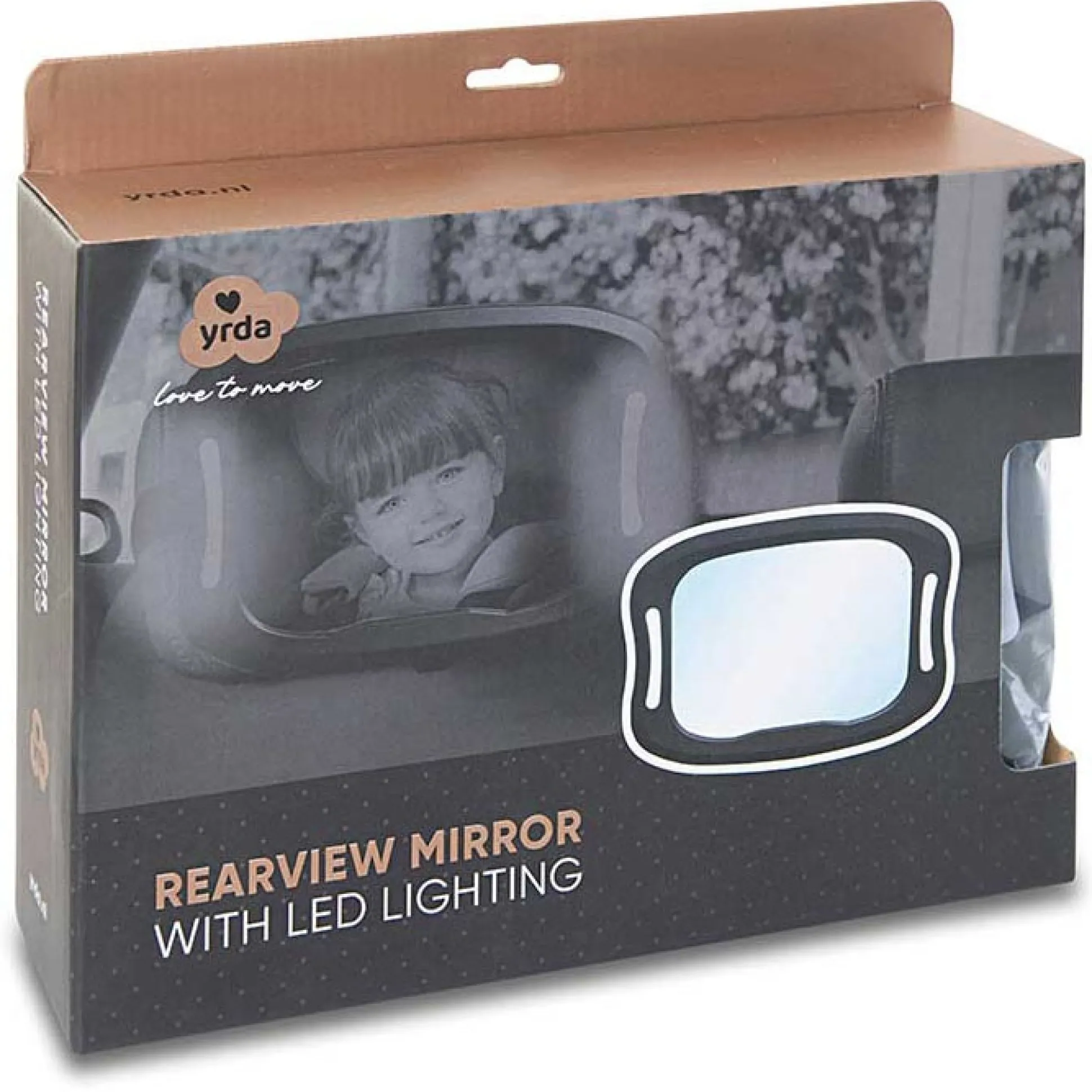 Met deze achteruitkijkspiegel van Yrda met LED verlichting kan je gemakkelijk je kleintje in de gaten houden. Bovendien is deze spiegel voorzien van rustgevende LED verlichting. Dit geeft een zwak schijnend licht zodat je als ouder optimaal zicht hebt als je in het donker op pad bent. De verlichting is in- en uit te schakelen met de bijgeleverde afstandsbediening. De afstandsbediening is door middel van een clip gemakkelijk op een plek te hangen die binnen handbereik is als je achter het stuur zit. Zo kan je samen veilig en comfortabel op pad. Tevens is deze spiegel verstelbaar. Afmeting: 28,5 cm x 21,4 cm x 8 cm. Werkt op batterijen (niet meegeleverd). Spiegel 3x AA batterijen. Afstandsbediening: 2x AAA batterijen.