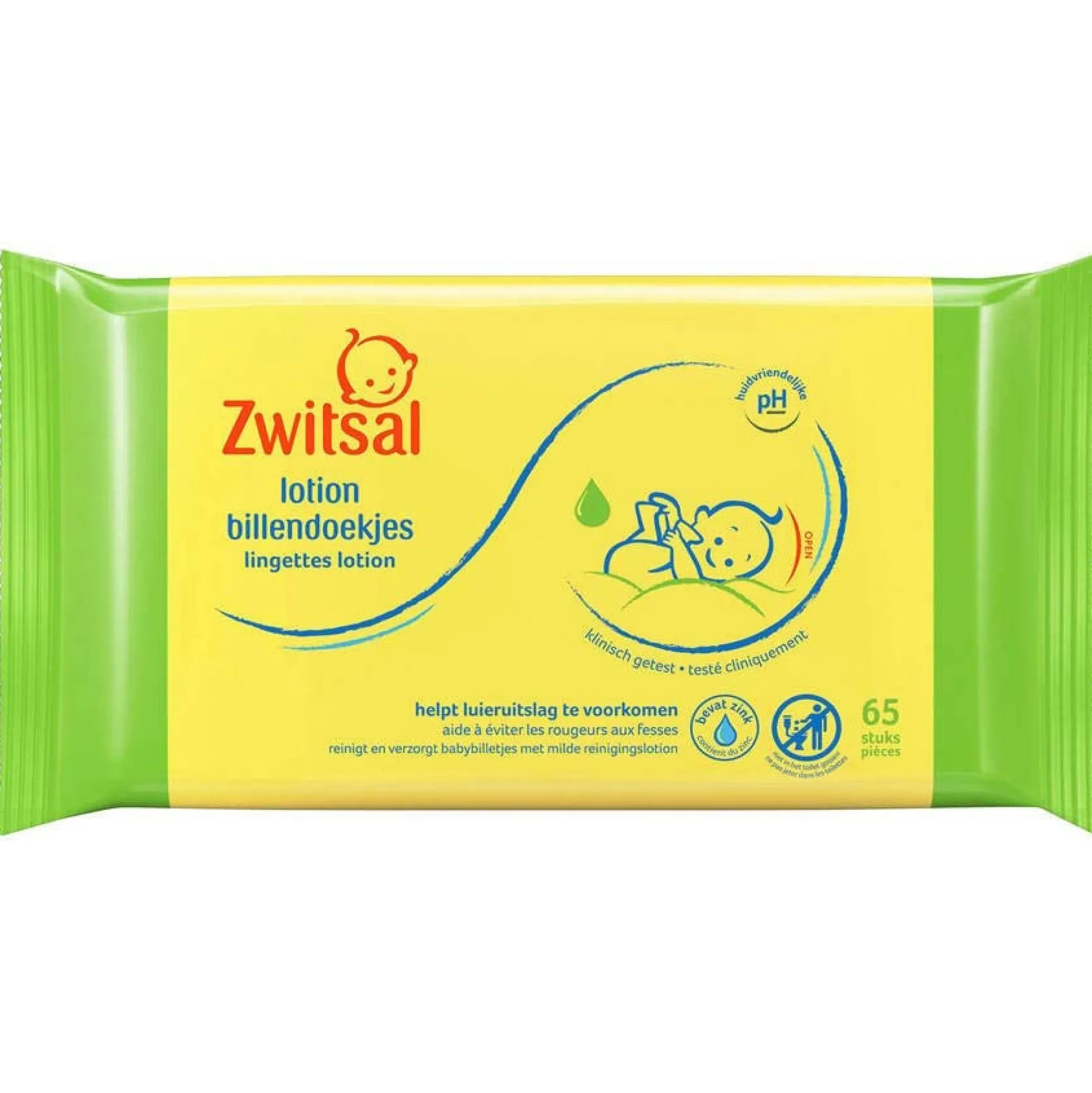 Zwitsal lotion billendoekjes zijn speciaal ontwikkeld om tegelijkertijd heel zacht en sterk te zijn, zodat je de gevoelige billetjes zo min mogelijk irriteert. De lotiondoekjes zijn voorzien van een milde, reinigende lotion, die de ontlasting snel verwijdert en de huid droog achterlaat.De doekjes bevatten een zinkzalfbestanddeel dat luieruitslag helpt voorkomen. In een omgeving waar zich zinkzalf bevindt wordt de agressieve werking van urine geneutraliseerd. Ook bevatten de doekjes vitamine E. Van vitamine E is bekend dat dit de huid in een betere conditie kan brengen. Tenslotte bevatten de doekjes kamille-extracten, bekend vanwege hun verzachtende werking.De Bijdehandjes zijn geschikt voor dagelijks gebruik en makkelijk een voor een te pakken.